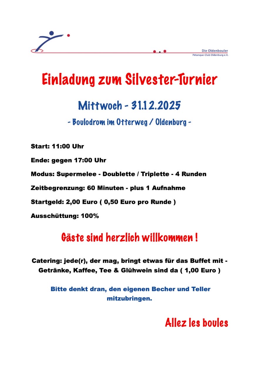 Liga, Meisterschaften, Turniere … Auf drei Seiten sind jetzt die Spieltermine 2026 » im Kreis Grafschaft Bentheim erschienen. (Quelle: Grafschafter Boulesport, 16.12.)