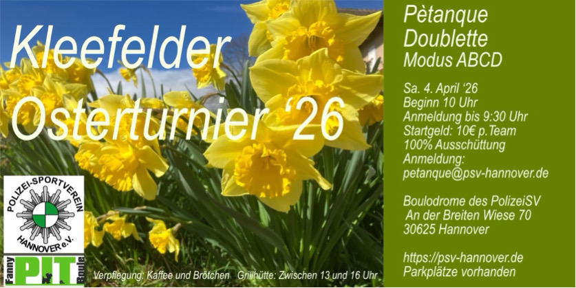 Ein Turnier für Sechser-Teams organisiert die SG Findorff am SO 12.07. Die Teams messen sich in jeweils drei Doublette-Partien, davon zwei als Mixte. Die Online-Anmeldung » wird am 1. März freigeschaltet; Mehr » – „SixPacks“ waren eine beliebte Spielform in der Erlter Boule-Scheune. (07.01.)
