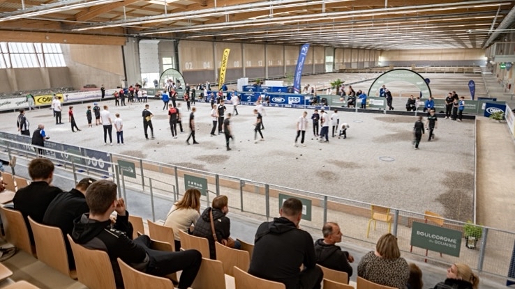 Der Spielort. 64 Plätze und eine 1.000-Sitze-Tribüne unterm Hallendach: Das am 7. März 2022 eingeweihte „Boulodrome du Douaisis“ in Sin-le-Noble (Dép. Nord) ist Europas größte Boulehalle.