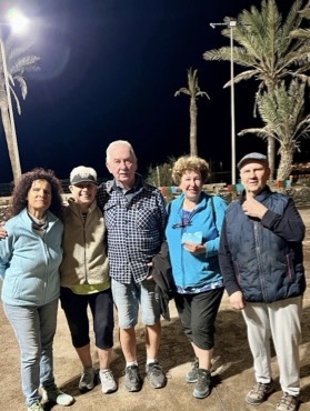Hier legt Tief „Elli“ das Boule-Geschehen lahm. Anders auf Teneriffa, wo Margot Trott, Heinz Maraun und andere Backens-Boulekurs-Absolventen in leichter Kleidung am wöchentlichen Turnier des Aro Clubs teilnehmen konnten. (Quelle: Margot Trott, 10.01.)