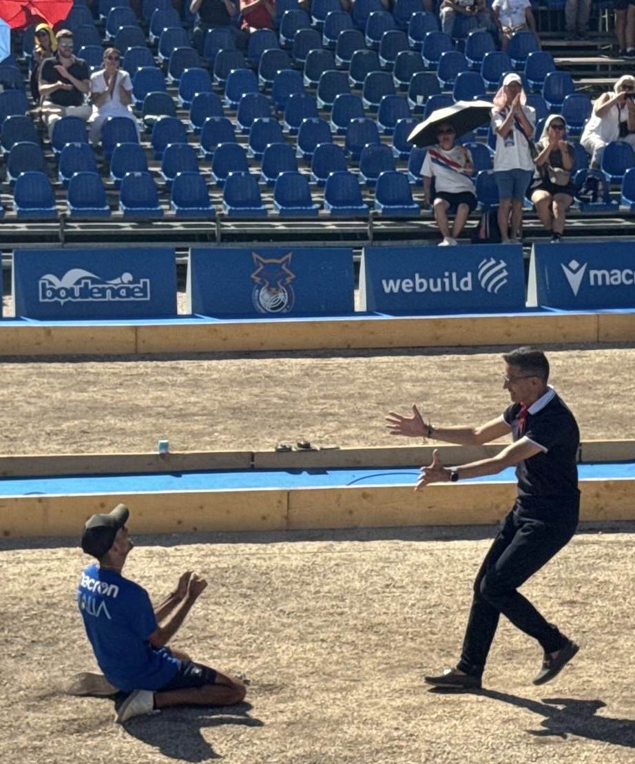 FRANKOPHON. Palau, südpazifisches Inselreich, war letzter Vorrunden-Gegner und zu stark für die DPV-Doublette-Männer (2:13). Palaus WM-Aktive haben recht französisch klingende Namen (Frédéric Bauer, Theo Vaurs …). Das Land gehört dem Weltverband FIPJP erst seit 2024 an, Amtssprache dort ist Englisch.