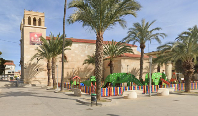 Die Plaza España mit der Kirche Nuestra Señora del Rosario im Zentrum von Benejúzar. (Google street view)
