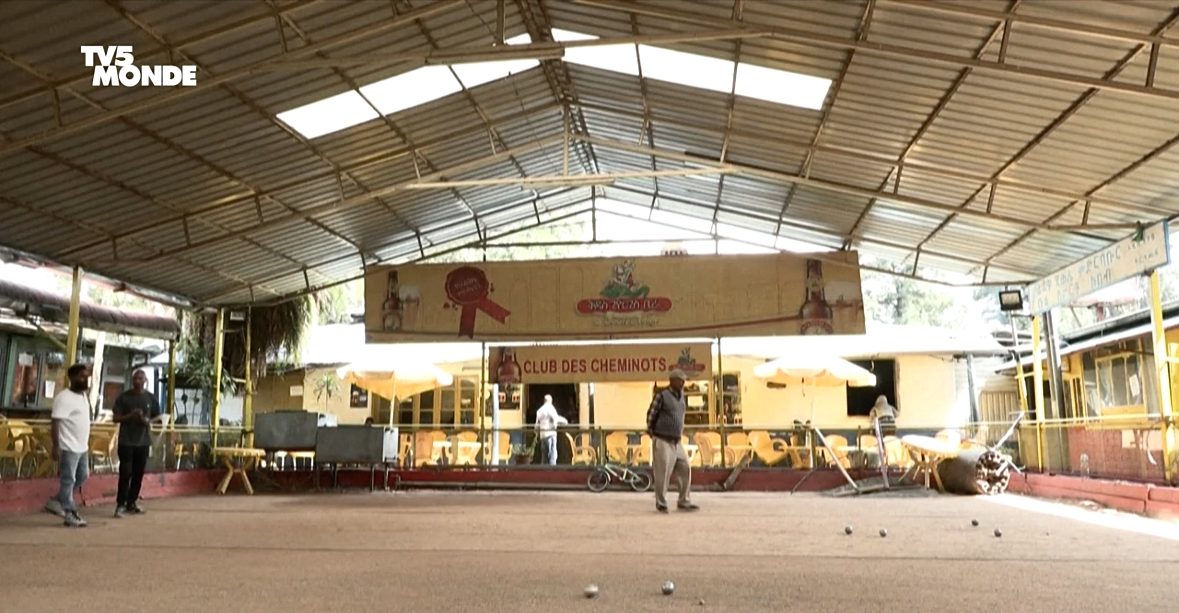 ist ein weißer Fleck auf der Pétanque-Weltkarte, nicht einmal Mitglied im Weltverband FIPJP. Und doch gibt es in Addis Abeba eine rege genutzte Boulehalle, wie TV5 Monde vor Kurzem berichtete. Die Halle wurde ursprünglich für die französischen Eisenbahner („cheminots“) gebaut, die zum Bau und Betrieb des 1917 eröffneten Schienenwegs nach Djibouti ins Land gekommen waren. Inzwischen ist sie zum täglichen Treffpunkt einheimischer Eisenbahn-Pensionäre geworden. – Fragt sich: wie lange noch? Schon ist der gefräßige Hochhaus-Bauboom in Addis Abeba der Halle gefährlich nahe gerückt.