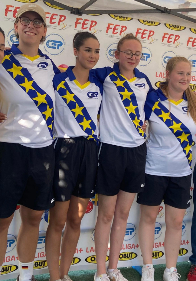 Mit einem unerwarteten 13:8 über Frankreich haben sich die jungen DPV-Frauen am Schlusstag der Espoirs-EM im spanischen Benejùzar ins Finale gespielt, wo sie am Sonntagnachmittag Belgien mit 13:1 abfertigten. Das bedeutete Triplette-Gold für Ella Koch, Silvana Lichte, Mercedes Strokosch und Celine Grauer, die zusätzlich eine Bronze-Medaille im Tir de Précision gewonnen hat. Das Männerfinale verlor Italien mit 4:13 gegen Frankreich. Die Titel im Präzisionsschießen sicherten sich am Samstag die Vertreter Spaniens und Frankreichs (Details unten). Titouan Olivier schraubte dabei den U23-Europarekord auf satte 54 Punkte.