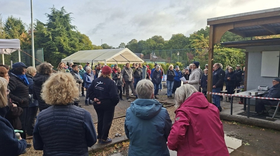 Trotz der Terminkonkurrenz aus Oldenburg und andernorts waren für den 13. SalzsauCup im Lüneburger Kurpark zunächst 64 Teams gemeldet. Die Wetterprognose ließ das Feld auf 39 Doublettes schrumpfen. Und von denen erschien am SA 04.10. nicht einmal jedes zweite. – Abmelden? – Wir doch nicht! – Übrig blieben 18 regenfeste Teams, die sich abseits der am Vorabend gespannten und nun pfützenübersäten Felder bespielbare Flächen suchen mussten. Übrig blieben auch erhebliche Vorräte an Brötchen, Erbsensuppe etc. Zurückblieb schließlich eine Menge Frust beim gastgebenden B-Team Rettmer: viel Engagement für die Tonne.