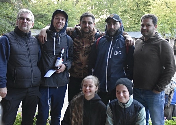 Tatsächlich besserte sich das Wetter ab Mittag. Zwischendurch kam die Sonne durch und lockte sogar ein Brautpaar zum Fototermin in den Park. Und so entstand am Ende – nach fünf Schweizer-Runden – auch ein richtiges Siegerbild mit Vereins-Chef Matthias Steep ganz links: